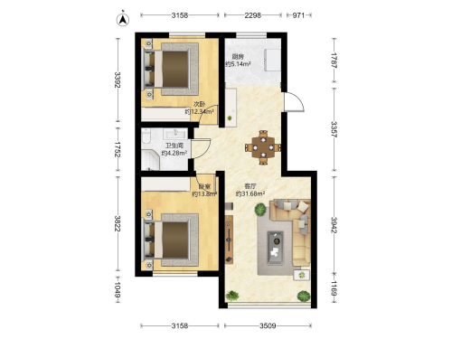 房屋戶型: 2 室1廳 1 廚1衛(wèi)
