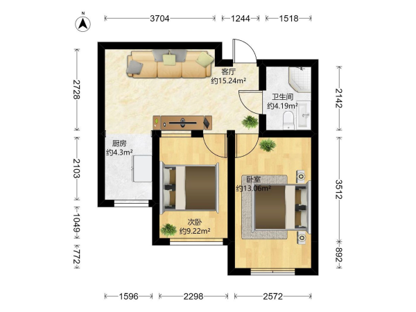 房屋戶型: 2 室1廳 1 廚1衛(wèi)
